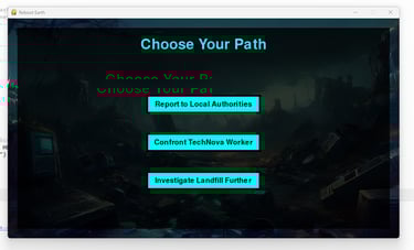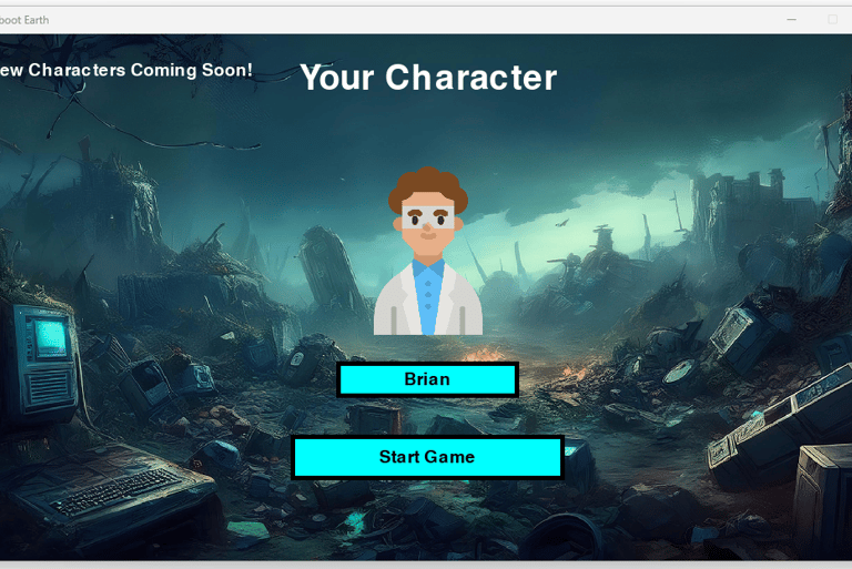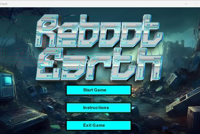Below you will find a video walkthrough of my Pygame, Reboot Earth, where I explain the code and run through the design, the idea, and all win/lose scenarios of the game. You will also find snapshots of certain parts of the game as well.